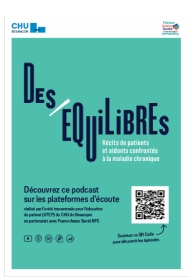 « Des/Equilibres », la série de podcasts de patients et de proches touchés par une maladie chronique conçue par France Assos Santé Bourgogne Franche-Comté et l’équipe de l’Unité Transversale d’Education Thérapeutique du Patient (UTEP) du CHU de Besançon. Plusieurs témoignages abordent le vécu avec une ou plusieurs maladies rares. Disponible dans son intégralité sur Les Cavalcades, YouTube, Spotify, Deezer et Apple Podcasts.